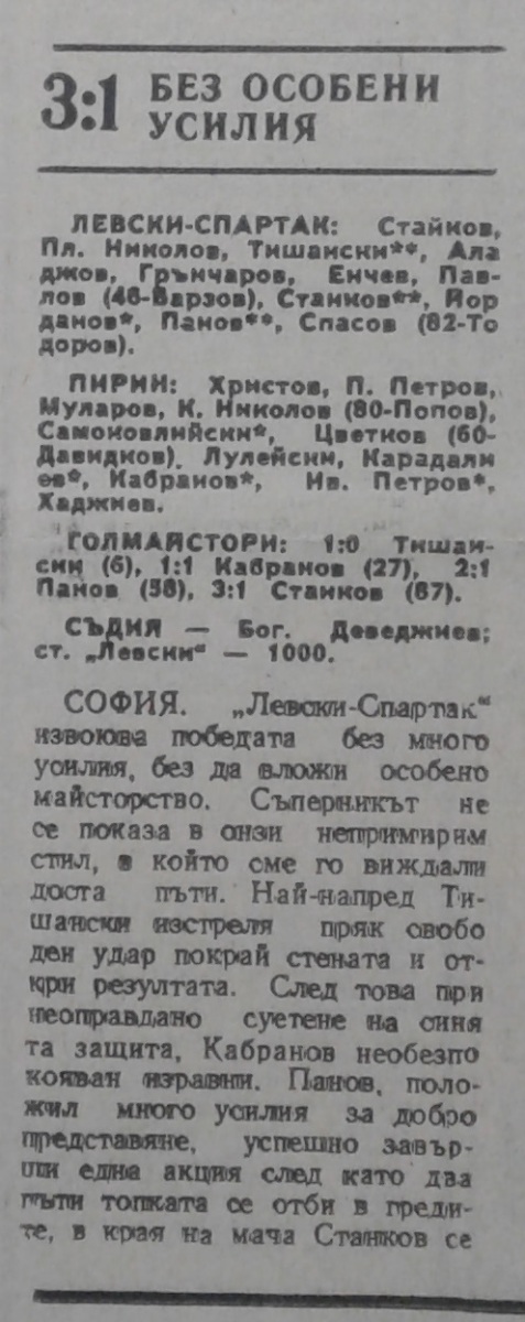 «Левски-Спартак» София - «Пирин» Благоевград - 3:1