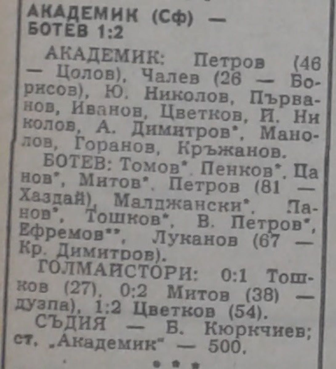 «Академик» София - «Ботев» Враца - 1:2