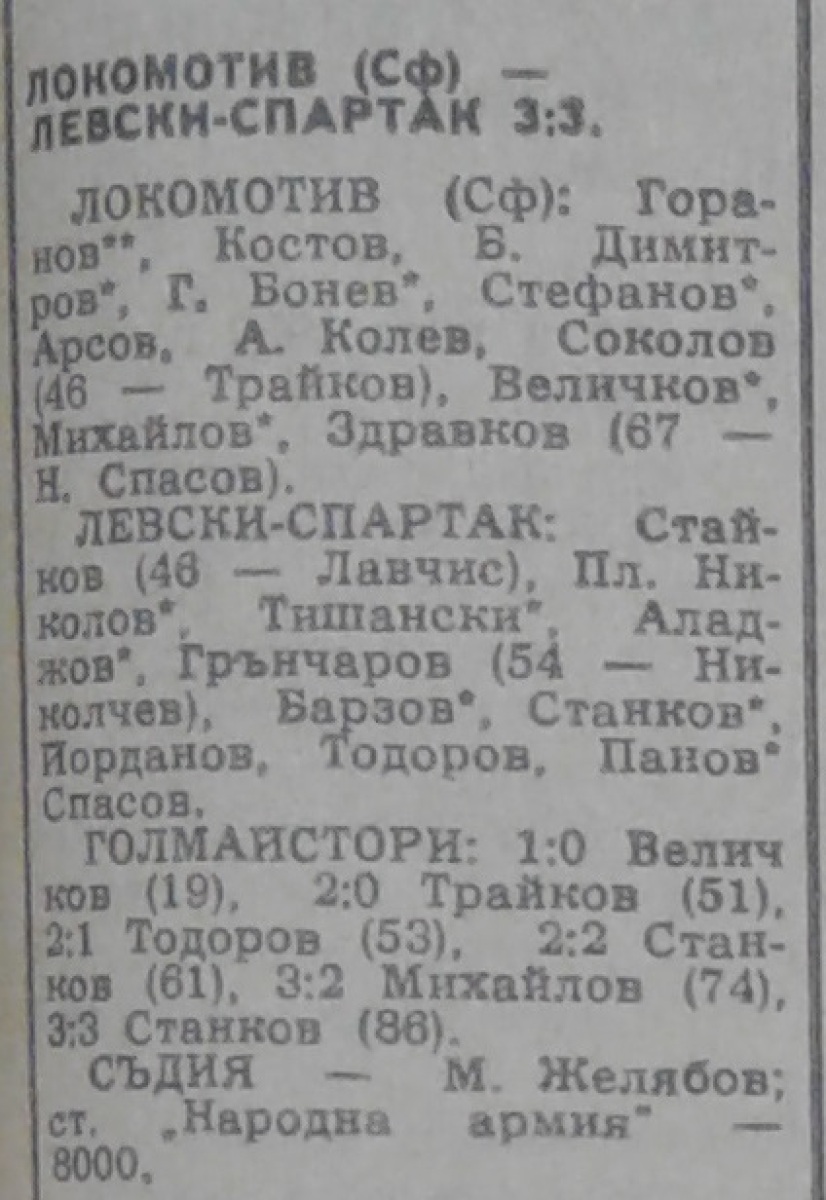 Ангел Колев (Лок. София) сыграл свой 150-й матч в А РФГ (1971/72 - 7 игр, 1972/73 - 7, 1973/74 - 26, 1974/75 - 29, 1975/76 - 27, 1976/77 - 26, 1977/78 - 28).