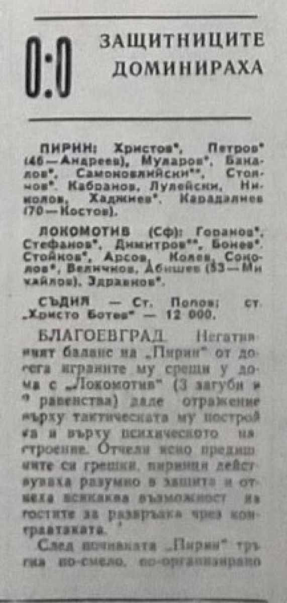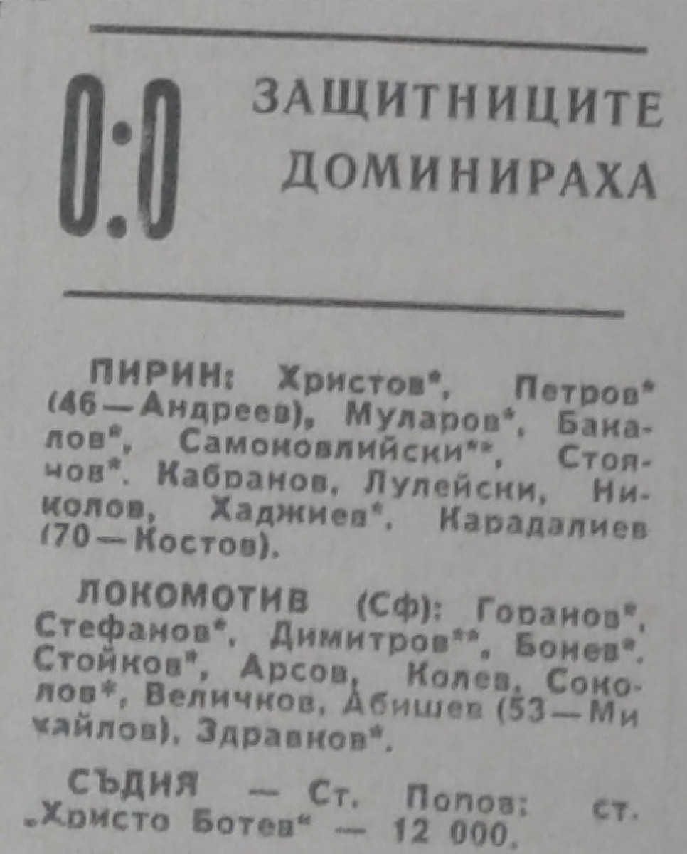 Йордан Самоковлийски (Пирин) провёл свой 150-й матч в А РФГ (1968/69 - 10 игр, 1971/72 - 24, 1974/75 - 26, 1975/76 - 29, 1976/76 - 29, 1977/78 - 30, 1978/79 - 2).