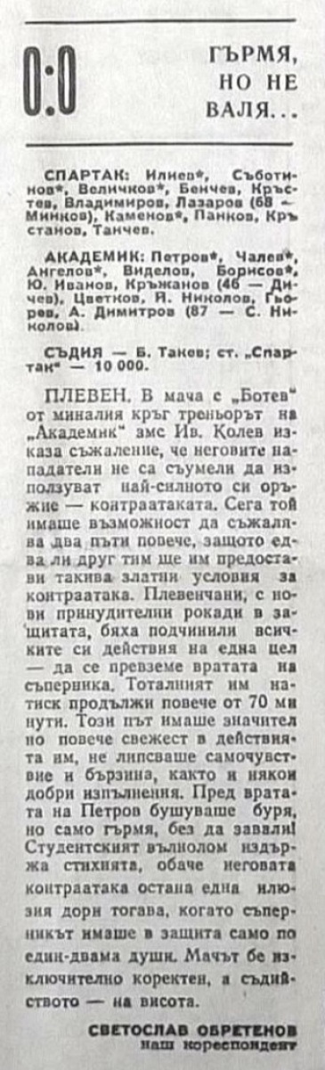 «Спартак» Плевен - «Академик» София - 0:0