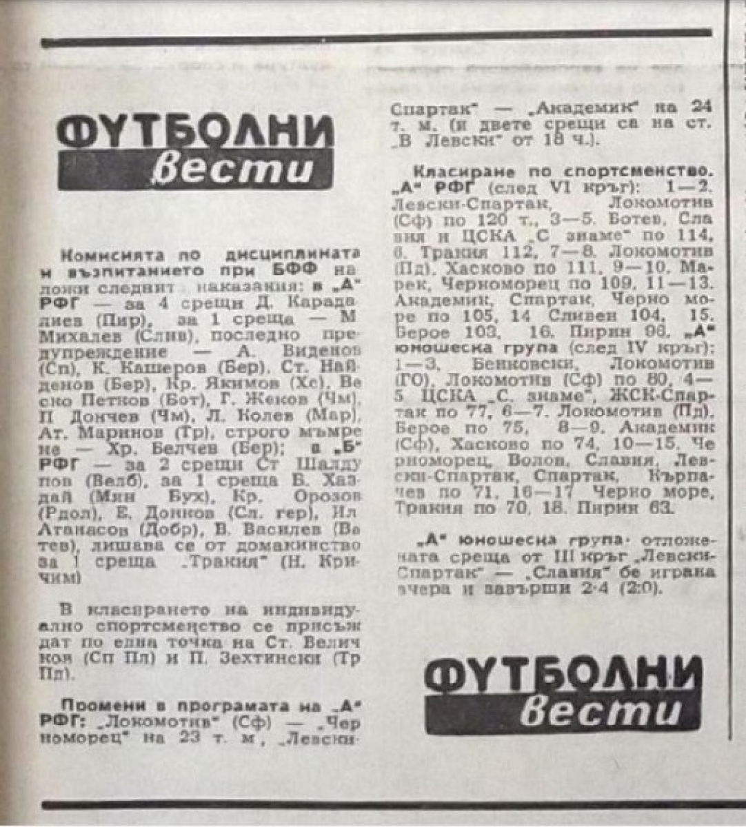 Чемпионат Болгарии 1978/79. Группа А
