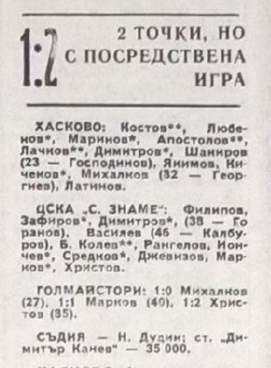 «Хасково» Хасково - «ЦСКА Септемврийско Знаме» София - 1:2