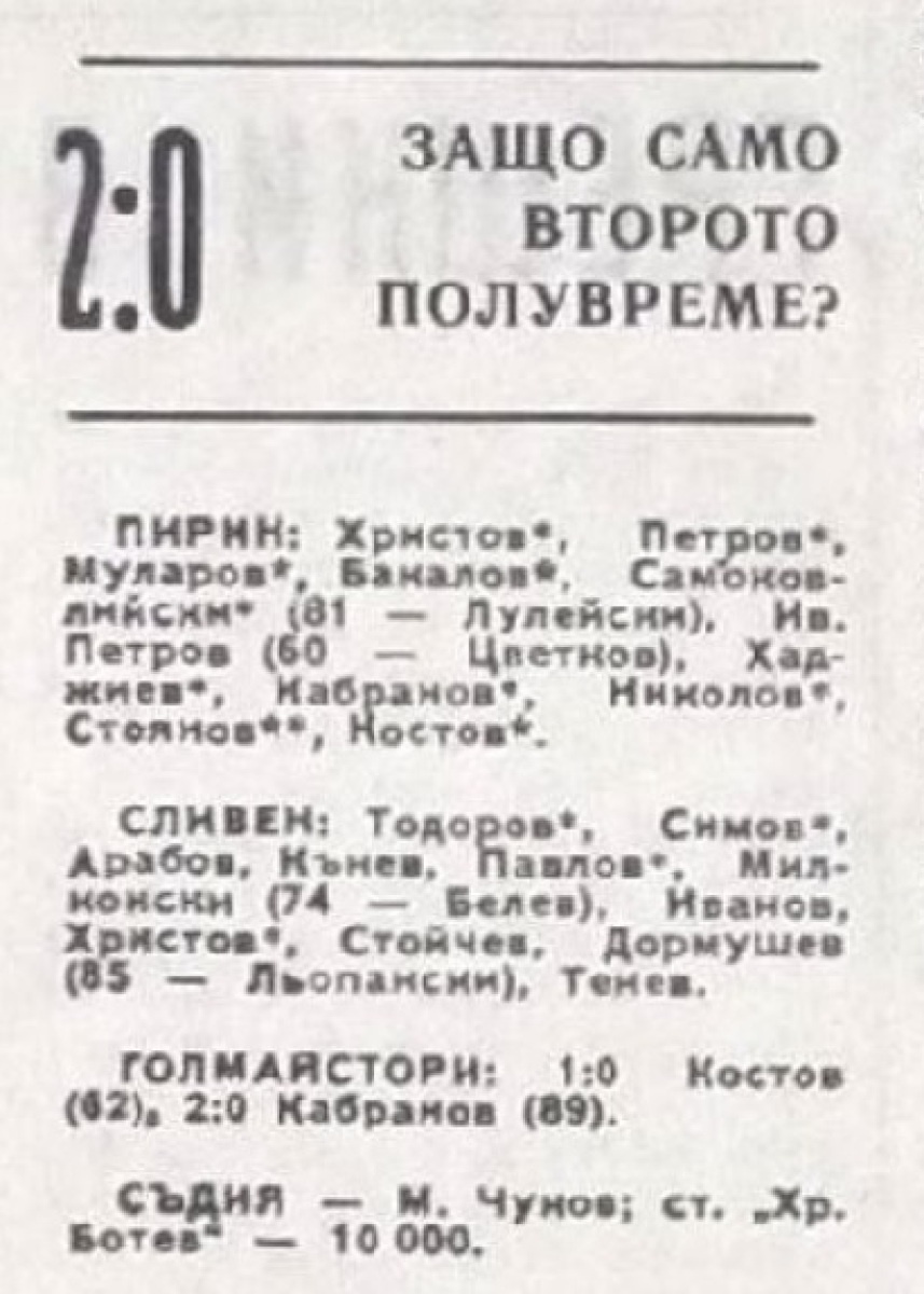 Иван Петров (Пирин) сыграл свой 150-й матч в А РФГ (1969/70 - 1 игра, 1970/71 - 21, 1971/72 -28, 1972/73 - 30, 1973/74 -27, 1974/75 -21, 1977/78 - 19,1978/79 - 3).