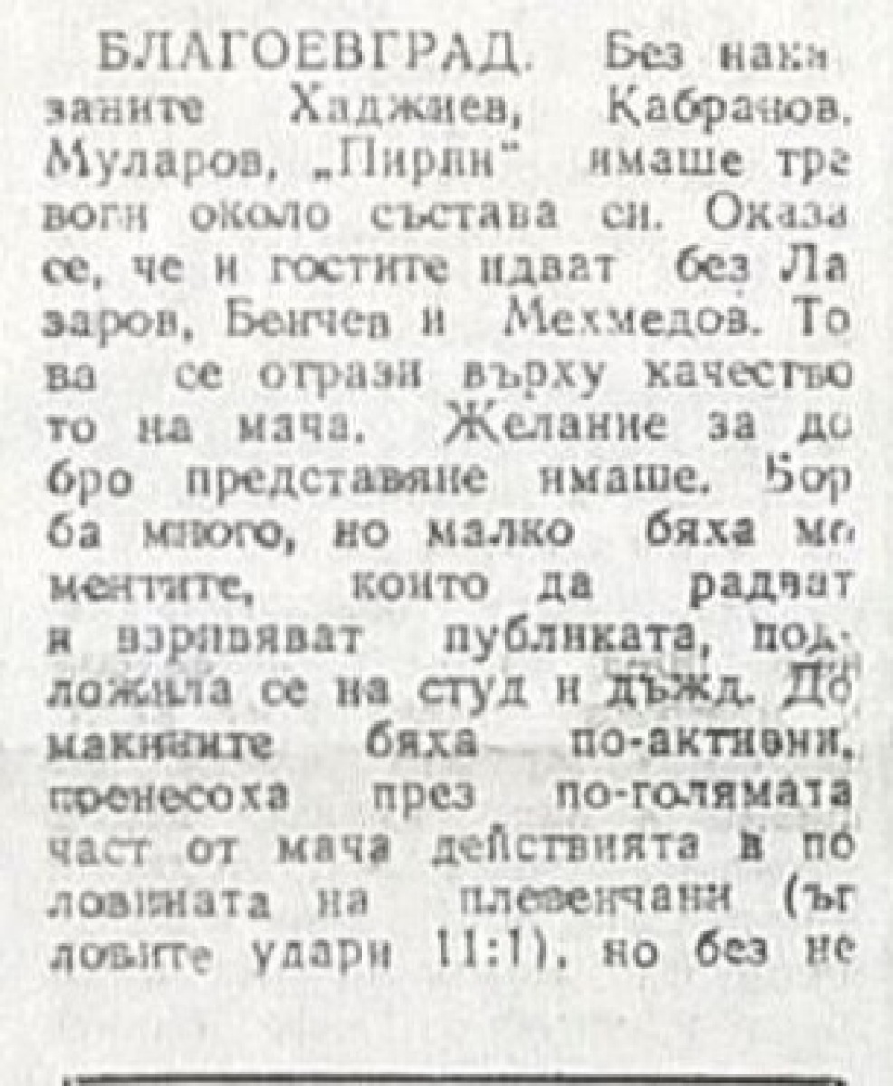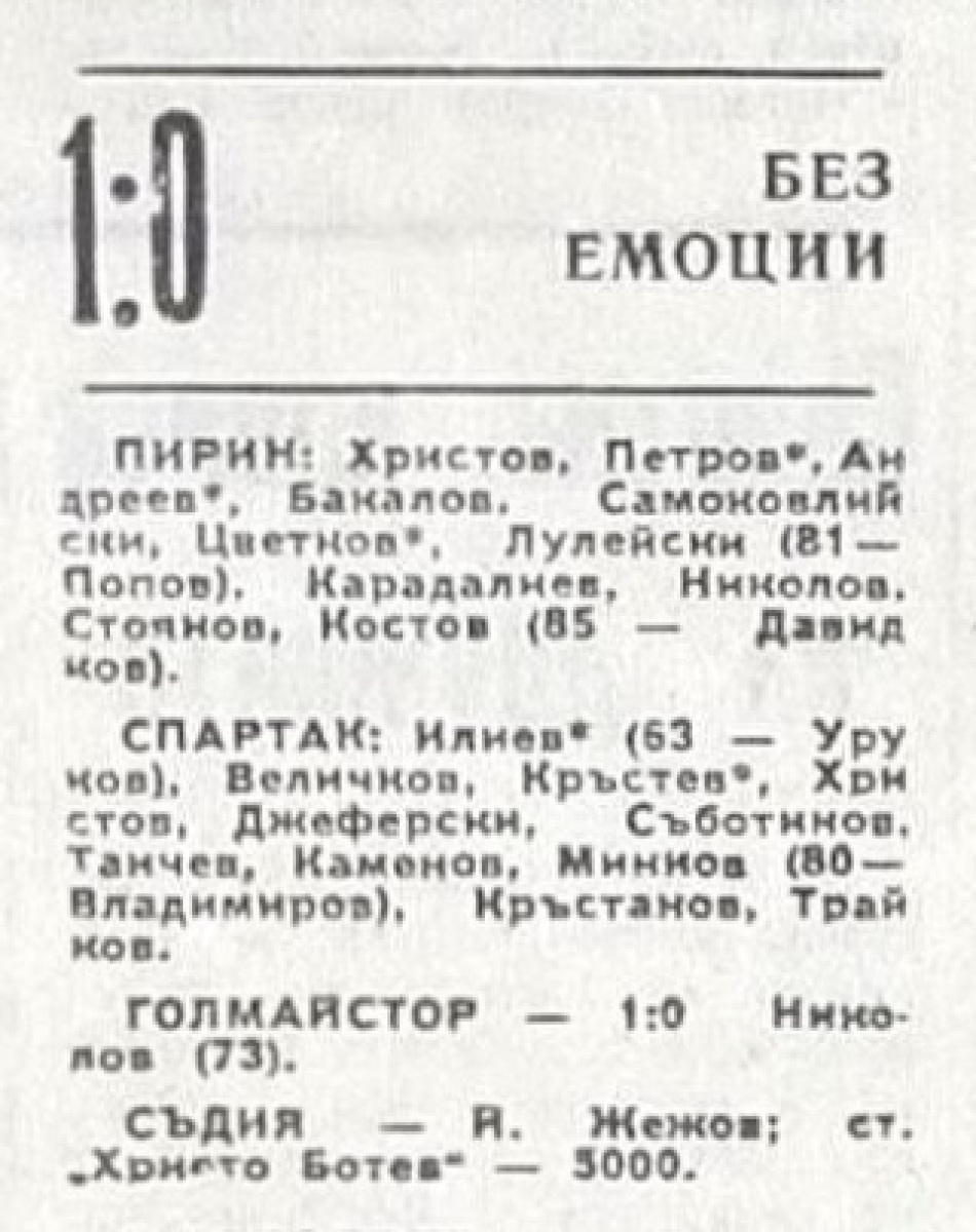 «Пирин» Благоевград - «Спартак» Плевен - 1:0