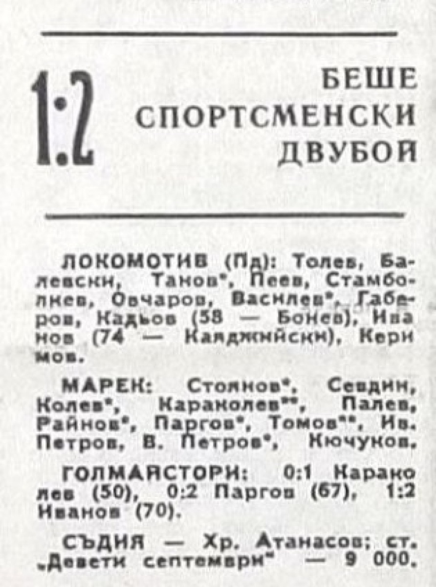 «Локомотив» Пловдив - «Марек» Станке-Димитров - 1:2