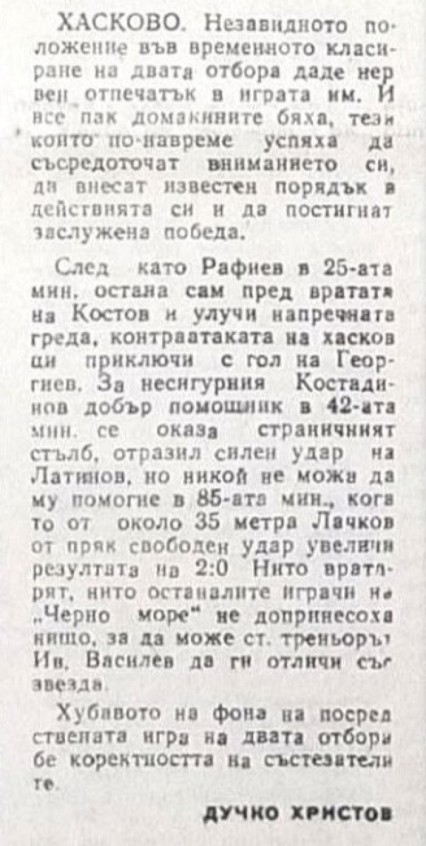 «Хасково» Хасково - «Черно море» Варна - 2:0