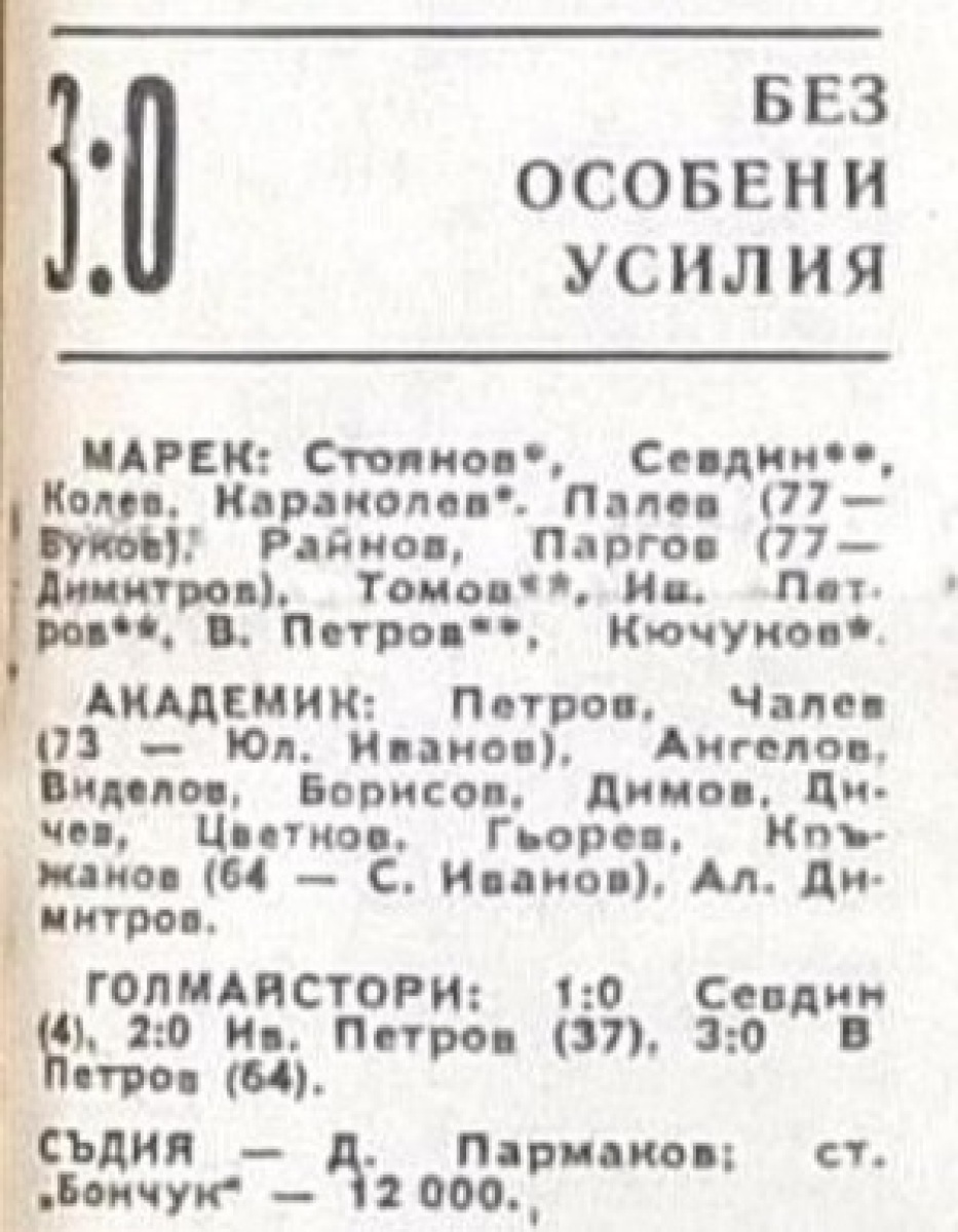 «Марек» Станке-Димитров - «Академик» София - 3:0
