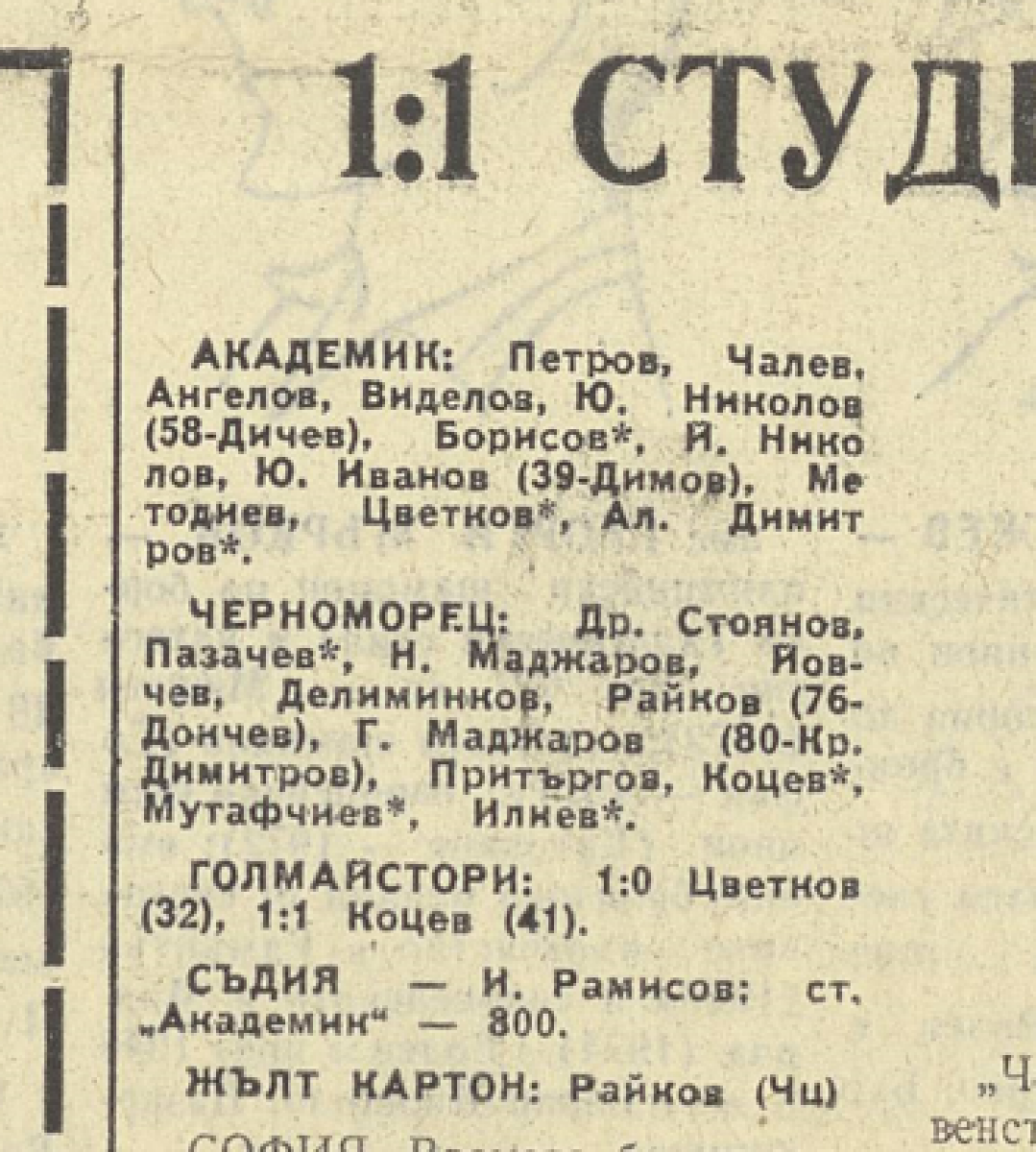 «Академик» София - «Черноморец» Бургас - 1:1