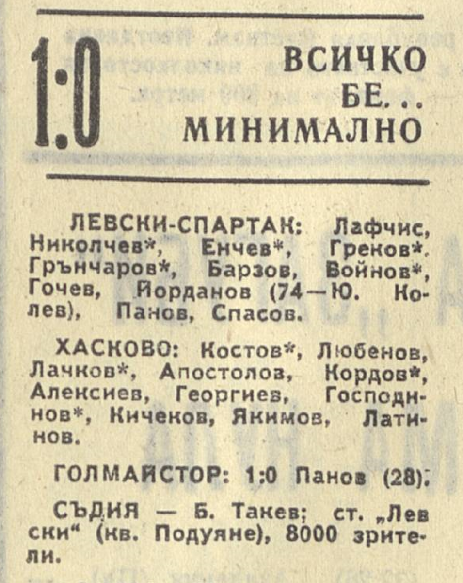 «Левски-Спартак» София - «Хасково» Хасково - 1:0