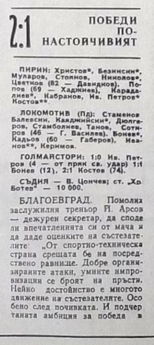 «Пирин» Благоевград - «Локомотив» Пловдив - 2:1