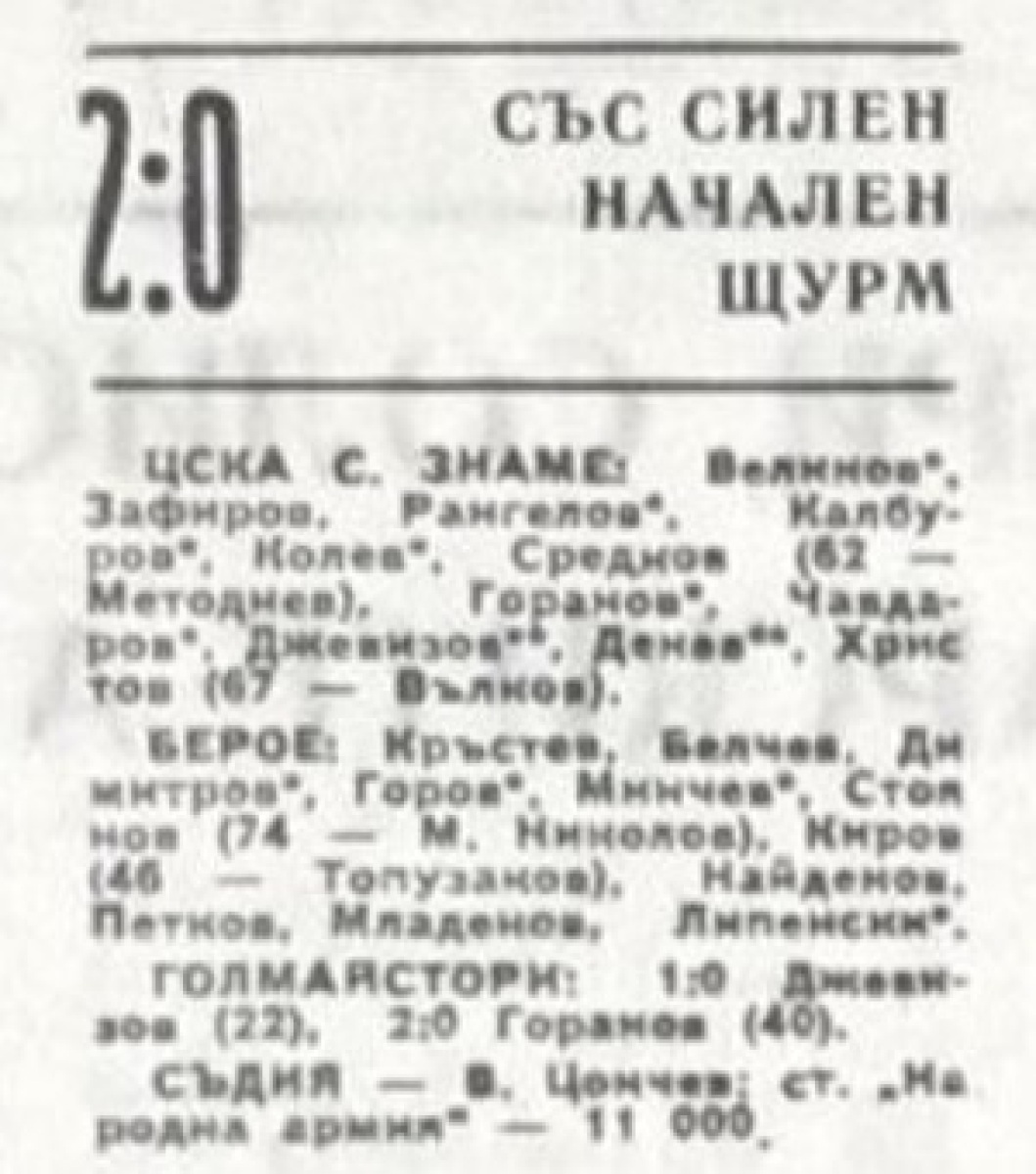 «ЦСКА Септемврийско Знаме» София - «Берое» Стара-Загора - 2:0