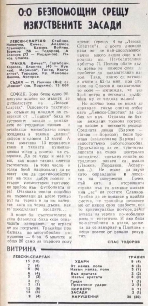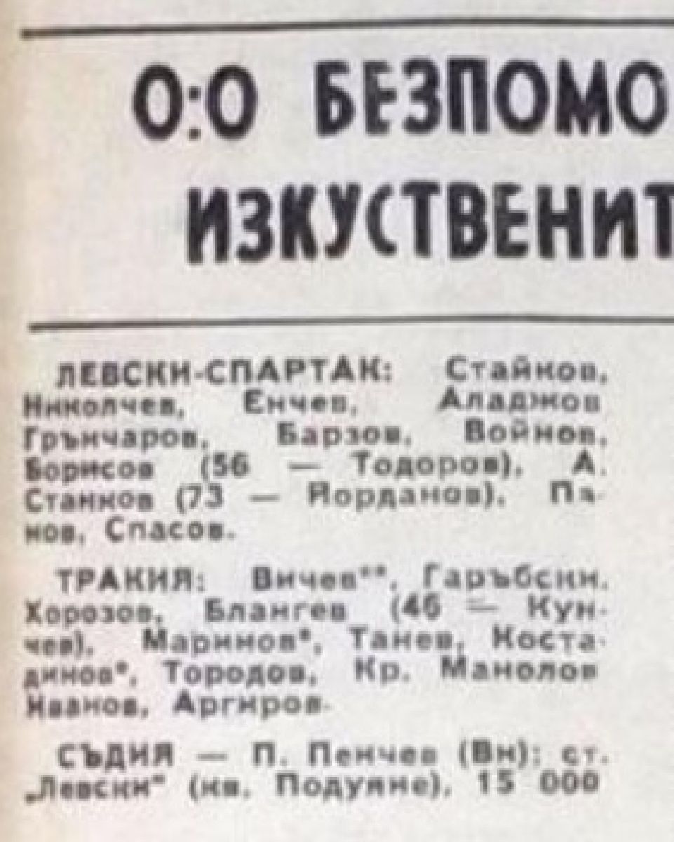 «Левски-Спартак» София - «Тракия» Пловдив - 0:0