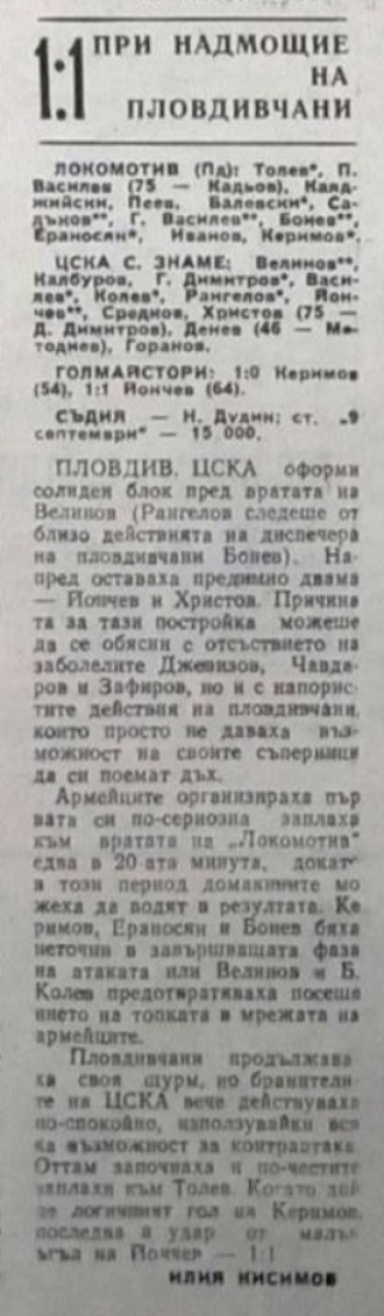 «Локомотив» Пловдив - «ЦСКА Септемврийско Знаме» София - 1:1