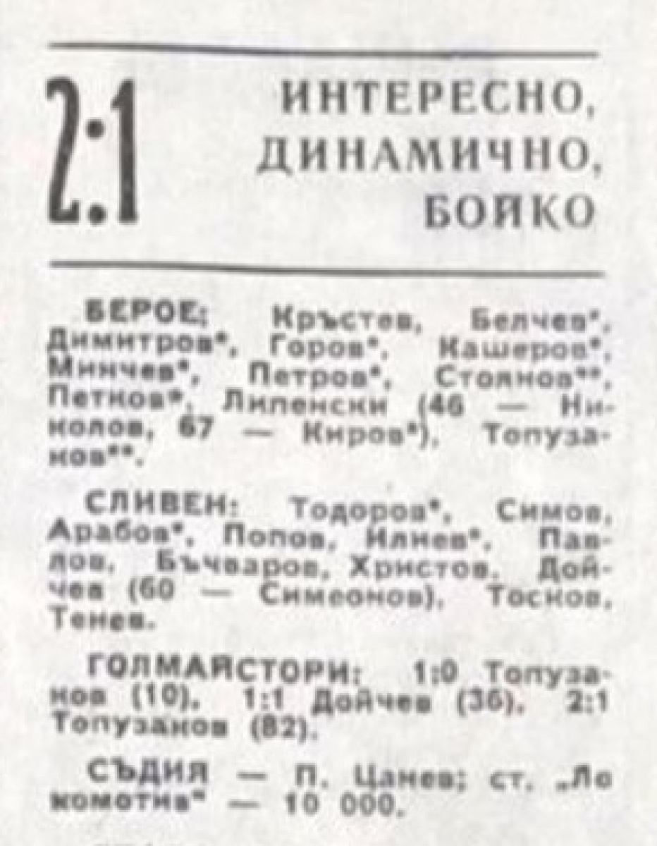 «Берое» Стара-Загора - АФД Сливен - 2:1