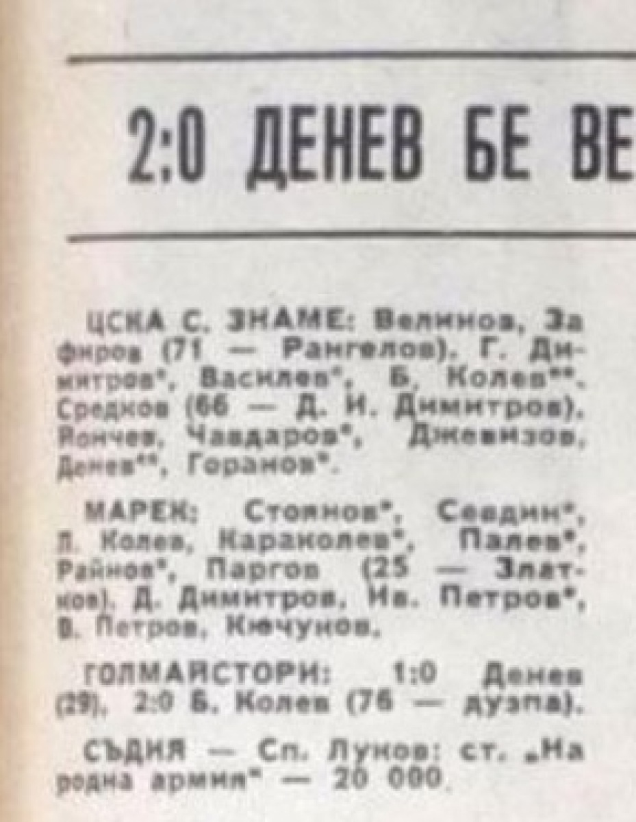 Любен Севдин (Марек) провёл свой 100-й матч в А РФГ (1971/72 - 25 игр, 1972/73 - 2, 1976/77 - 28, 1977/78 - 28, 1978/79 - 17).