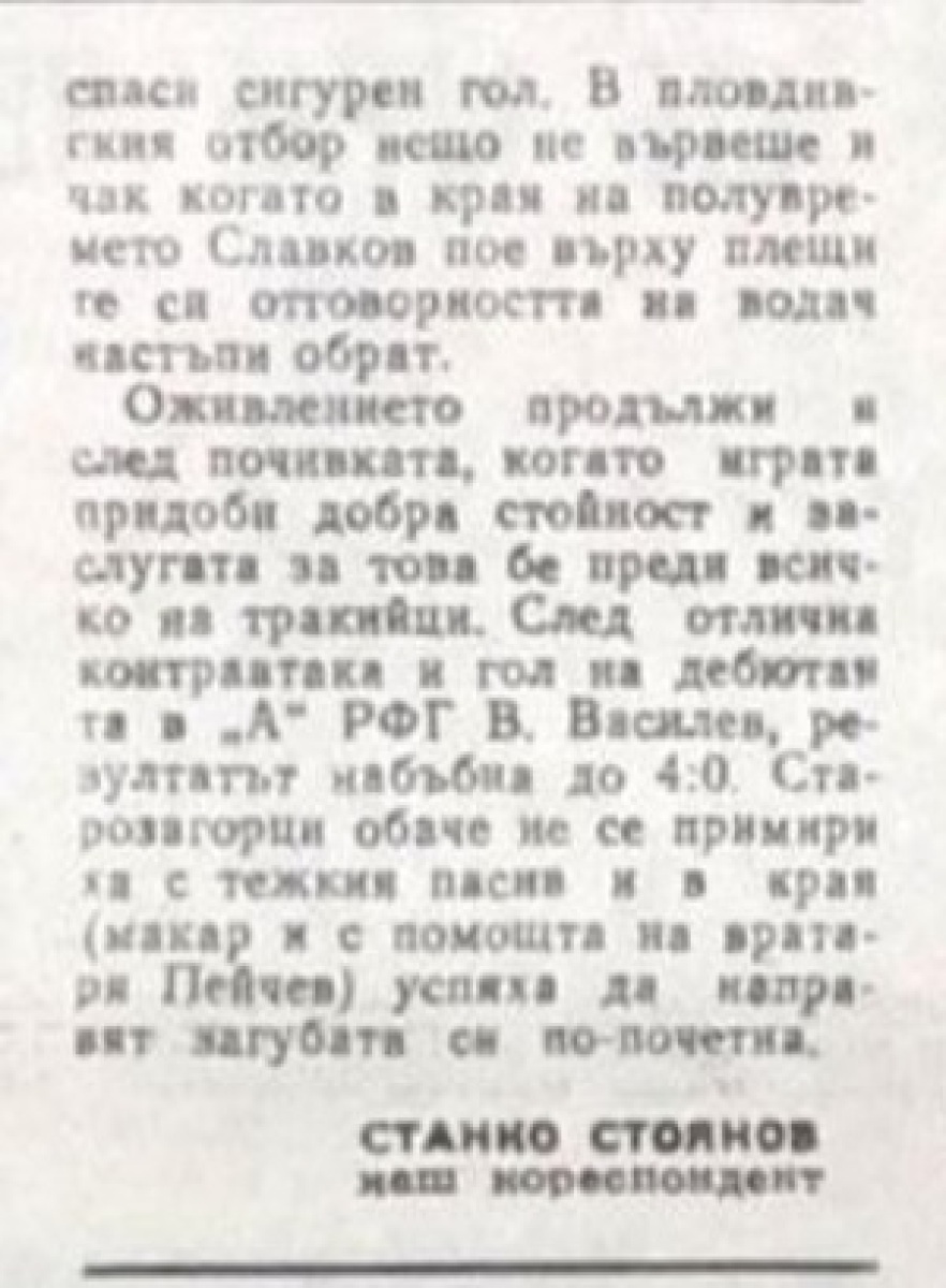 Васил Василев (Тракия Пловдив) дебютировал в А РФГ (из юнош. команды).