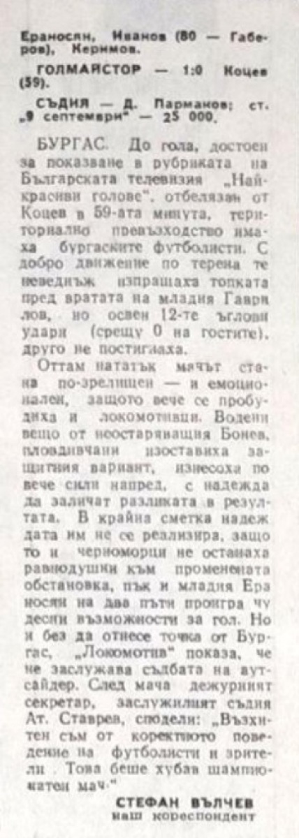 «Черноморец» Бургас - «Локомотив» Пловдив - 1:0