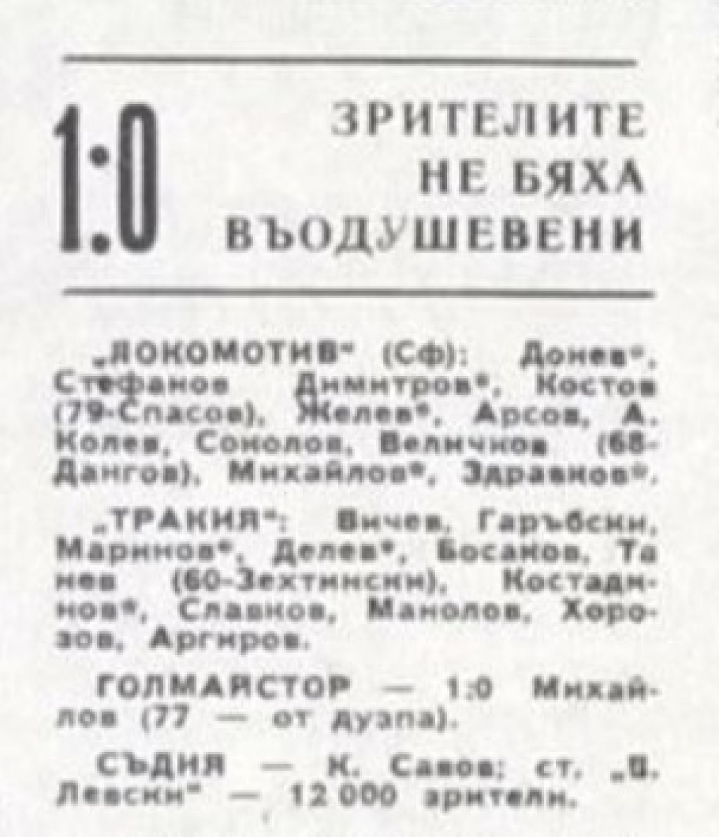 «Локомотив» София - «Тракия» Пловдив - 1:0