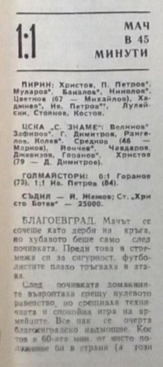«Пирин» Благоевград - «ЦСКА Септемврийско Знаме» София - 1:1