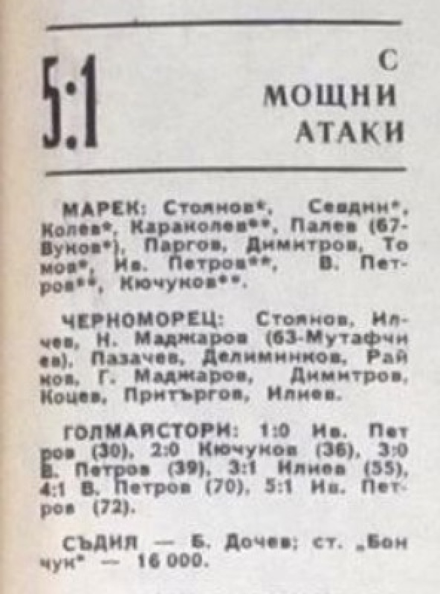 «Марек» Станке-Димитров - «Черноморец» Бургас - 5:1