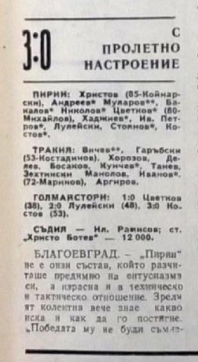 «Пирин» Благоевград - «Тракия» Пловдив - 3:0