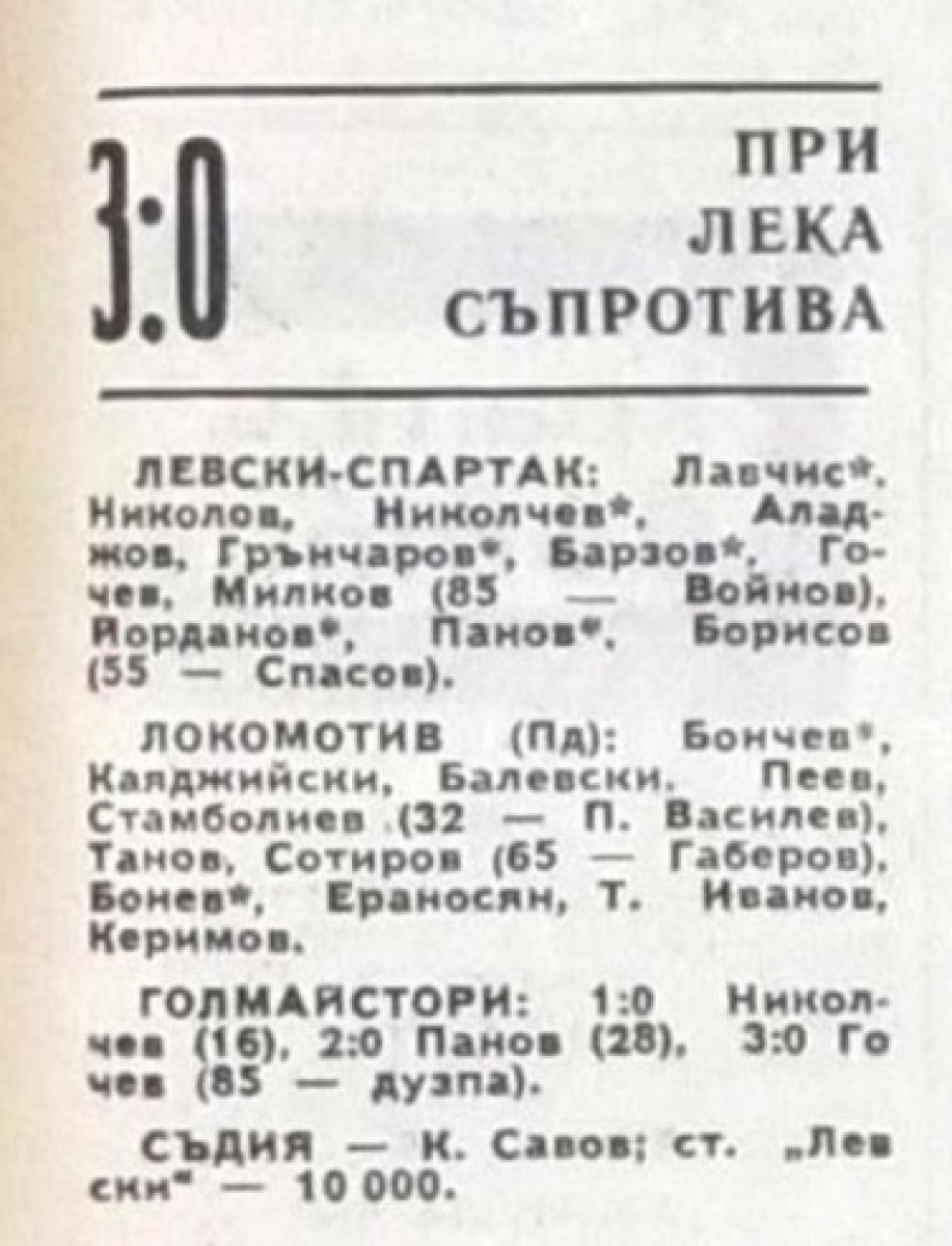 Павел Панов (Левски-Спартак) провёл свой 250-й матч в А РФГ (1968/69 - 8 игр (Спартак София),1968/69 - 7 (Левски-Спартак), 1969/70 - 23, 1970/71 - 28, 1971/72 - 33, 1972/73 - 11,1973/74 - 28, 1974/75 - 27, 1975/76 - 25, 1976/77 - 24, 1977/78 - 13, 1978/79 - 22).