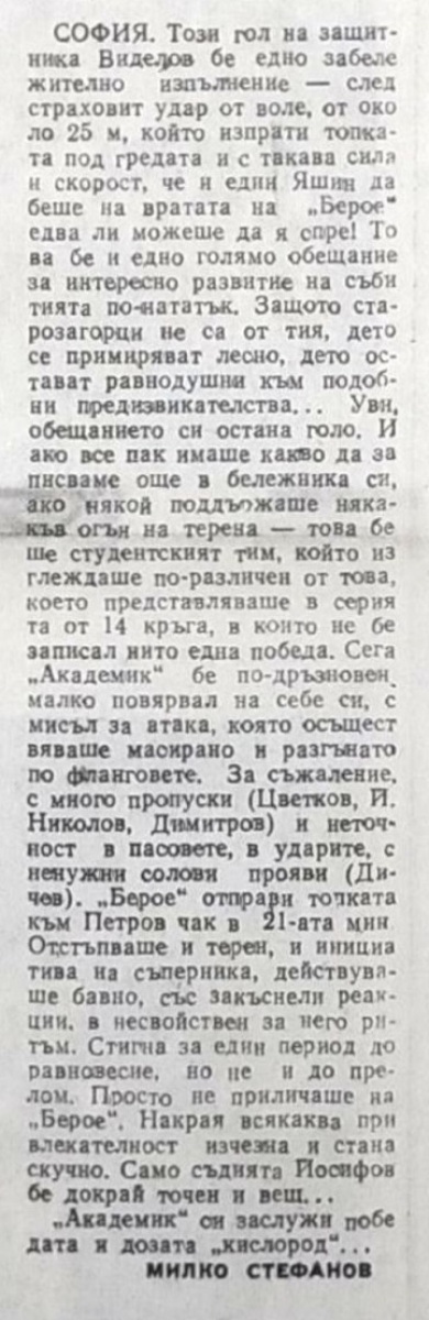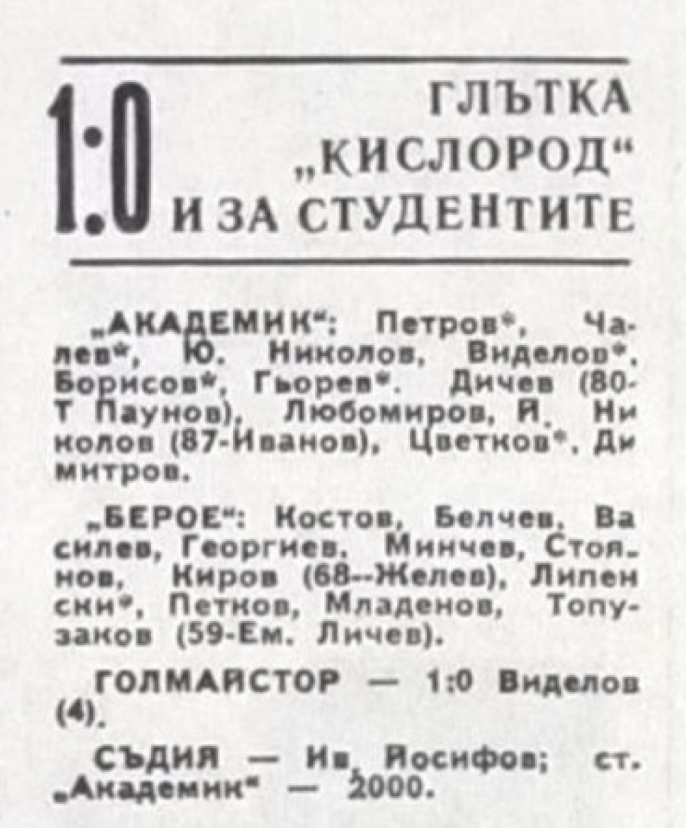 «Академик» София - «Берое» Стара-Загора - 1:0
