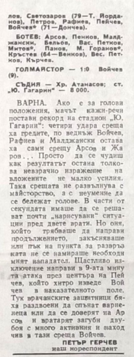 «Черно море» Варна - «Ботев» Враца - 1:0