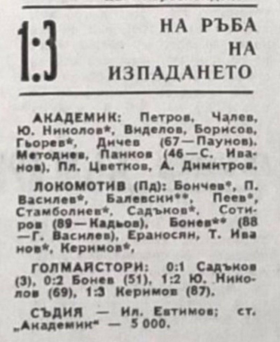 «Академик» София - «Локомотив» Пловдив - 1:3