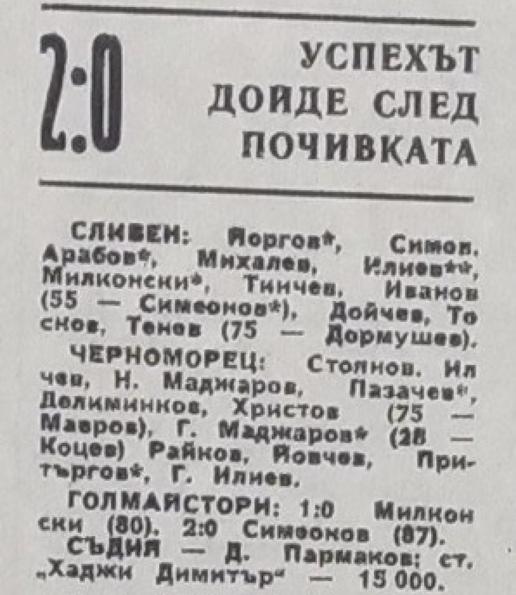 АФД Сливен - «Черноморец» Бургас - 2:0