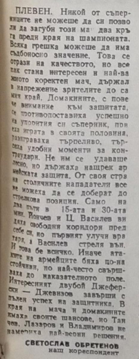 «Спартак» Плевен - «ЦСКА Септемврийско Знаме» София - 0:0