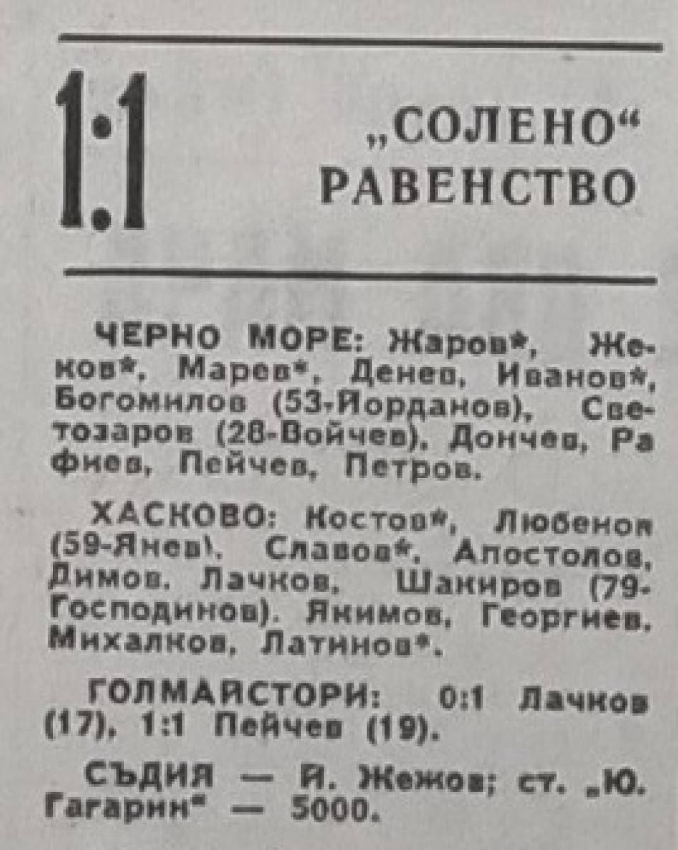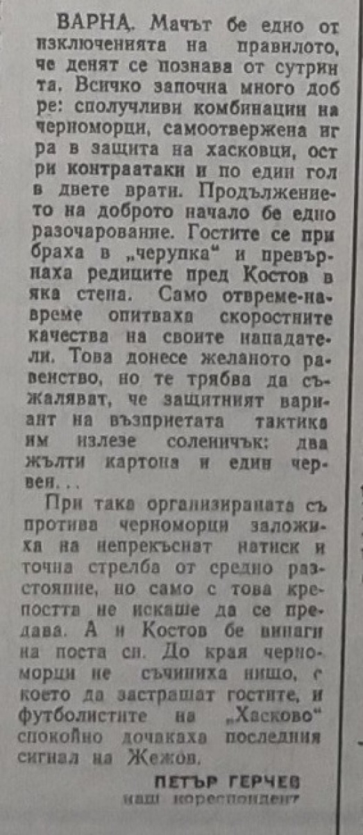 «Черно море» Варна - «Хасково» Хасково - 1:1