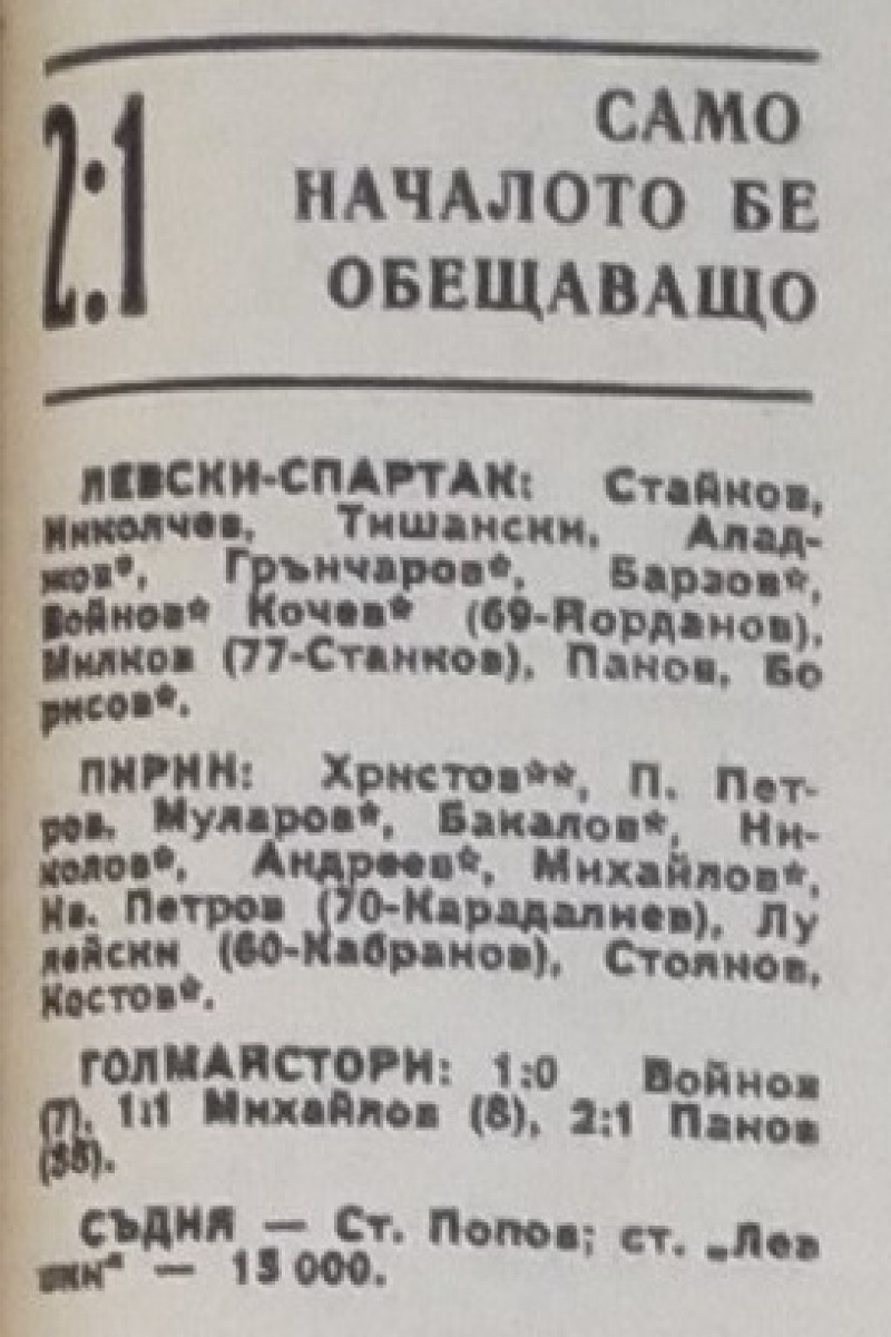 «Левски-Спартак» София - «Пирин» Благоевград - 2:1
