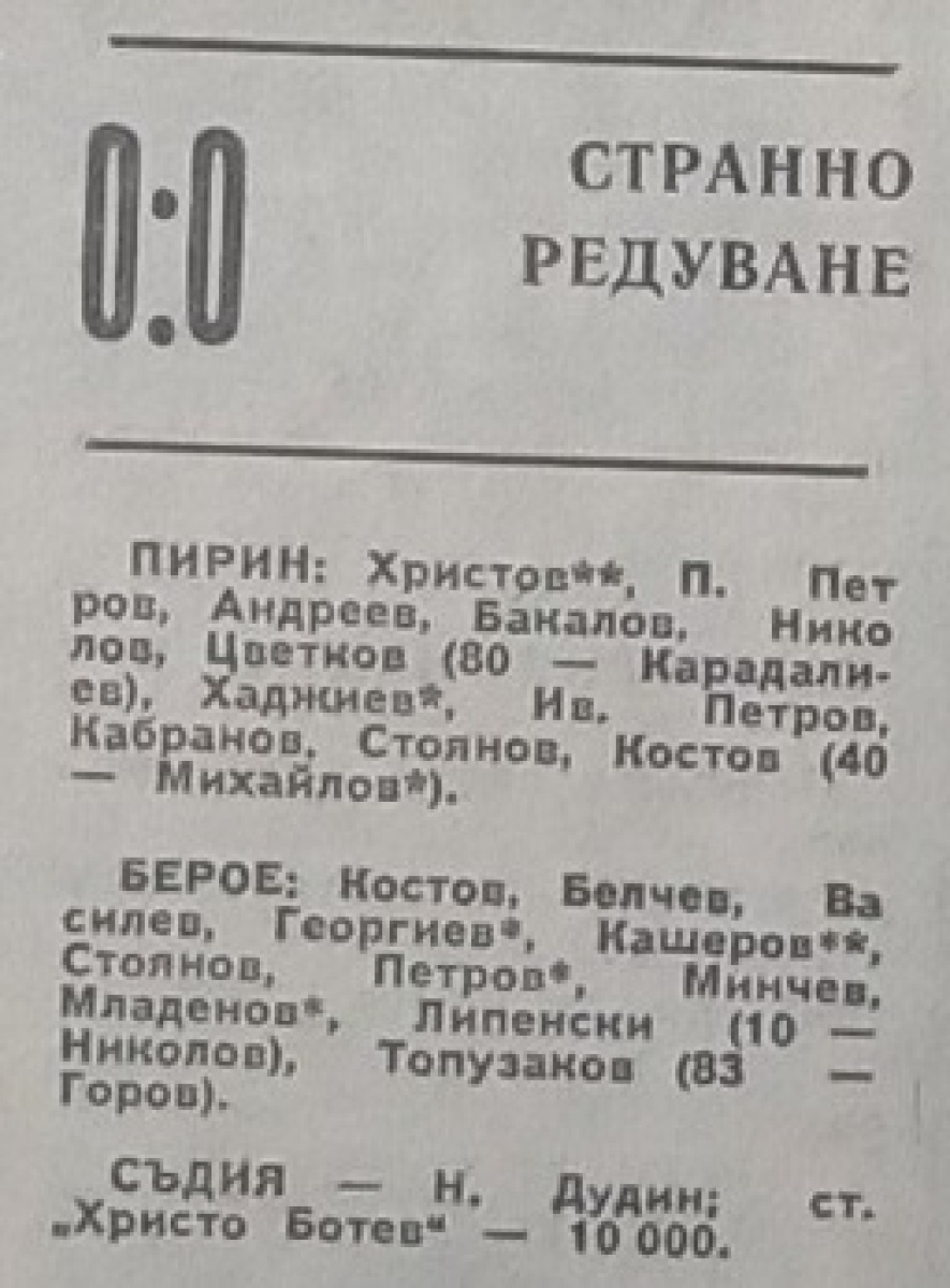 «Пирин» Благоевград - «Берое» Стара-Загора - 0:0