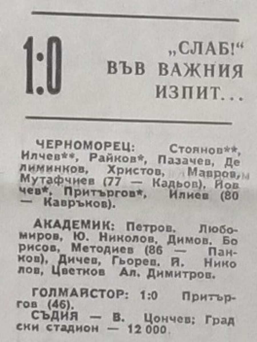 «Черноморец» Бургас - «Академик» София - 1:0