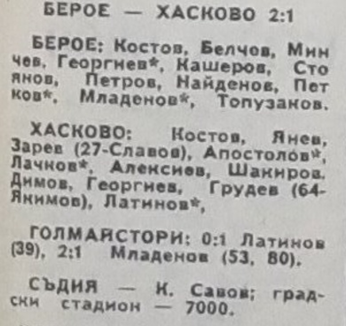 «Берое» Стара-Загора - «Хасково» Хасково - 2:1