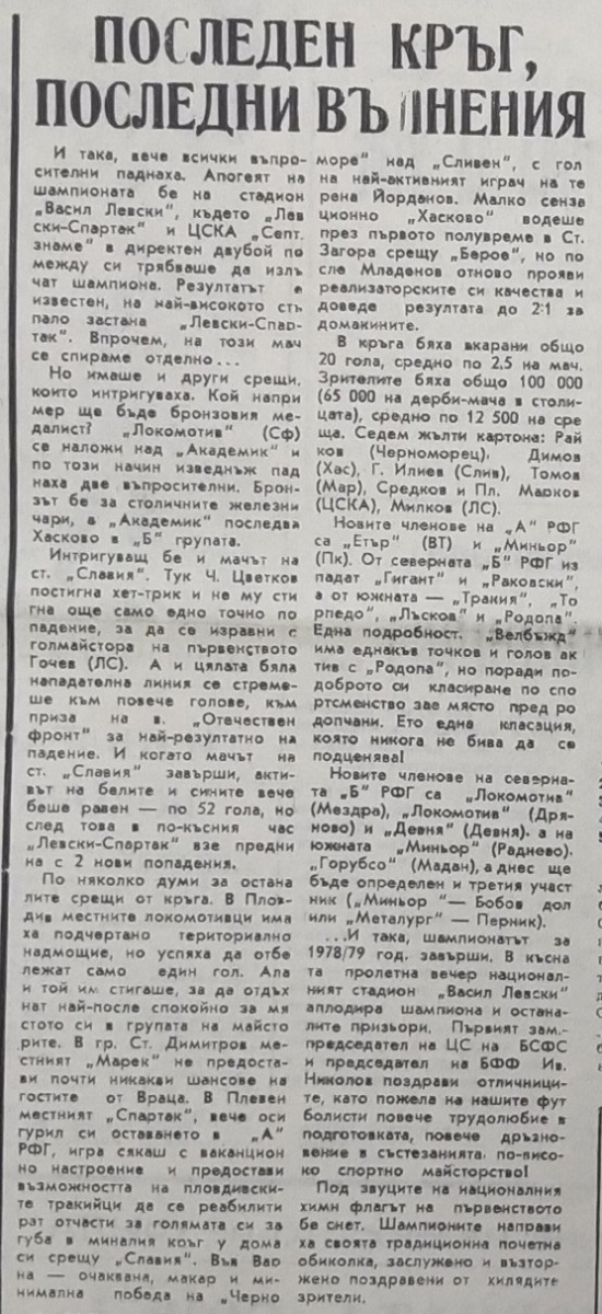 Чемпионат Болгарии 1978/79. Группа А