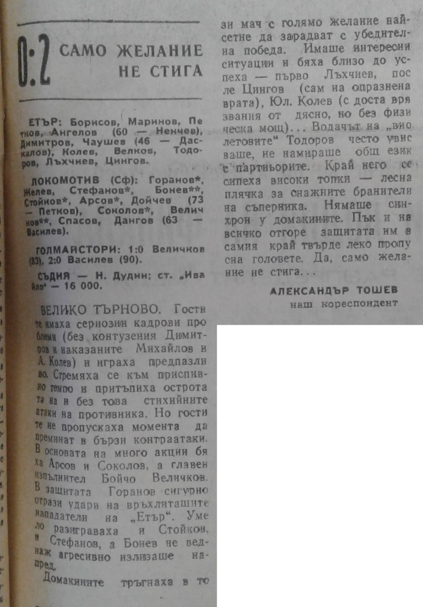 «Этыр» Велико-Тырново - «Локомотив» София - 0:2