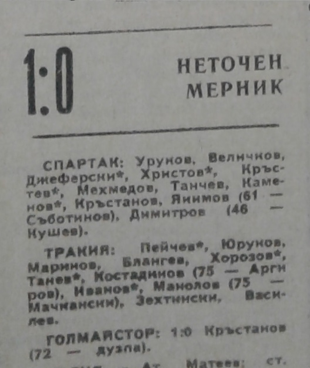 «Спартак» Плевен - «Тракия» Пловдив - 1:0