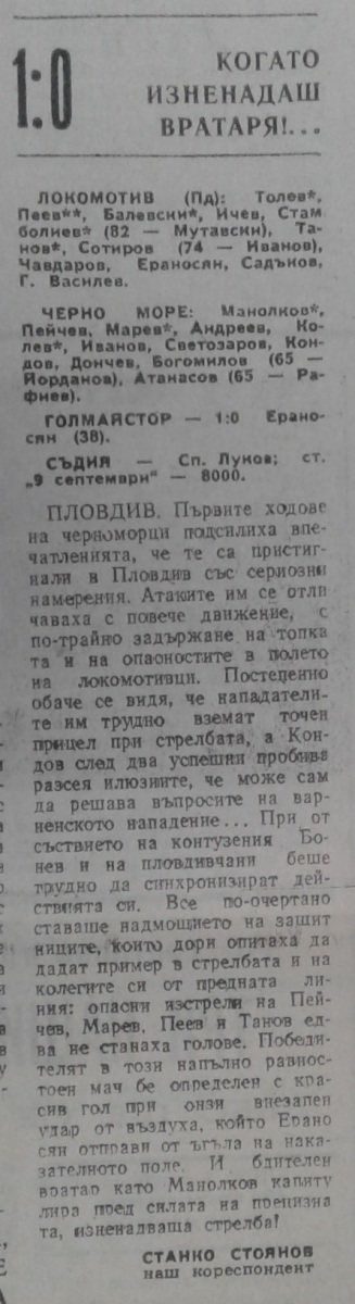 «Локомотив» Пловдив - «Черно море» Варна - 1:0