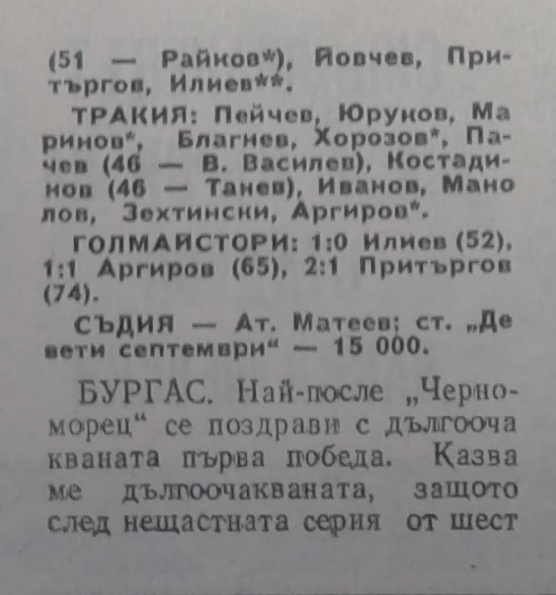 «Черноморец» Бургас - «Тракия» Пловдив - 2:1