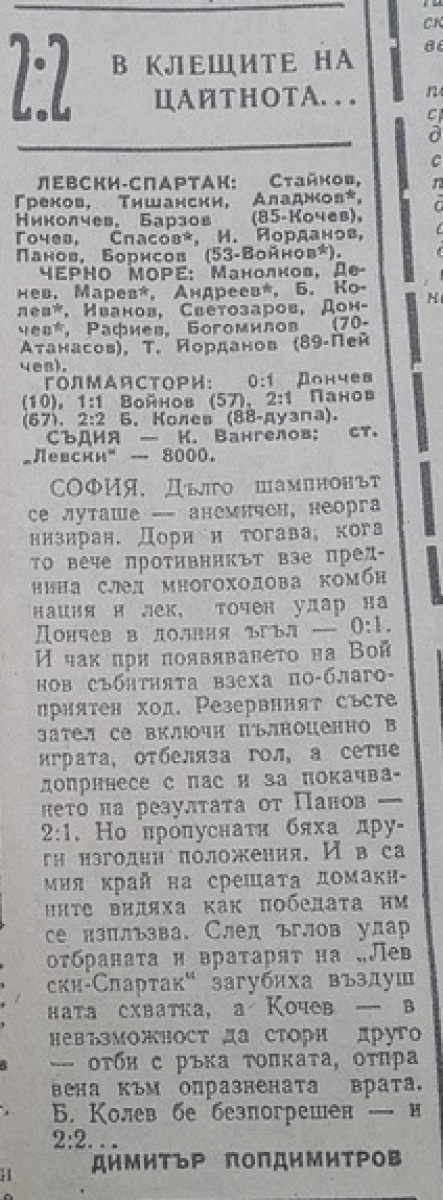 «Левски-Спартак» София - «Черно море» Варна - 2:2