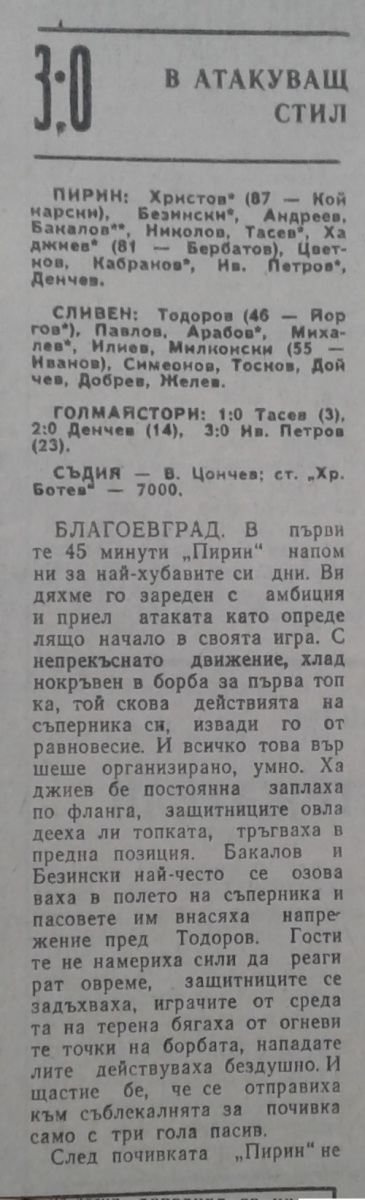 «Пирин» Благоевград - АФД Сливен - 3:0