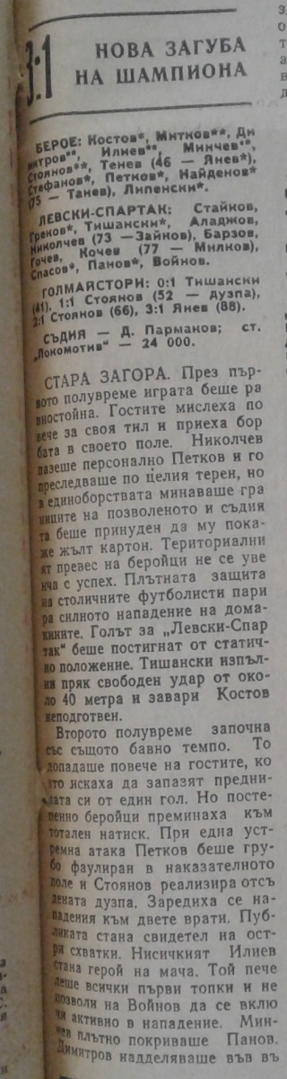 «Берое» Стара-Загора - «Левски-Спартак» София - 3:1