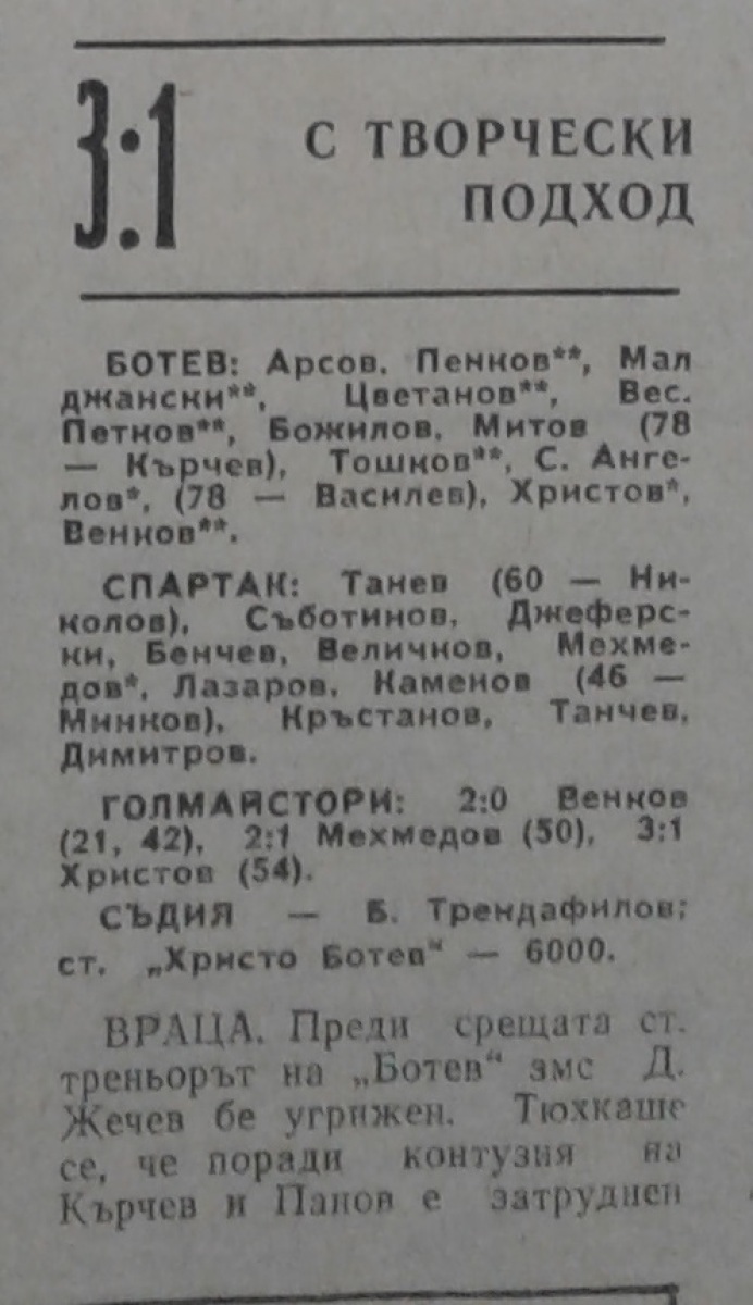 «Ботев» Враца - «Спартак» Плевен - 3:1
