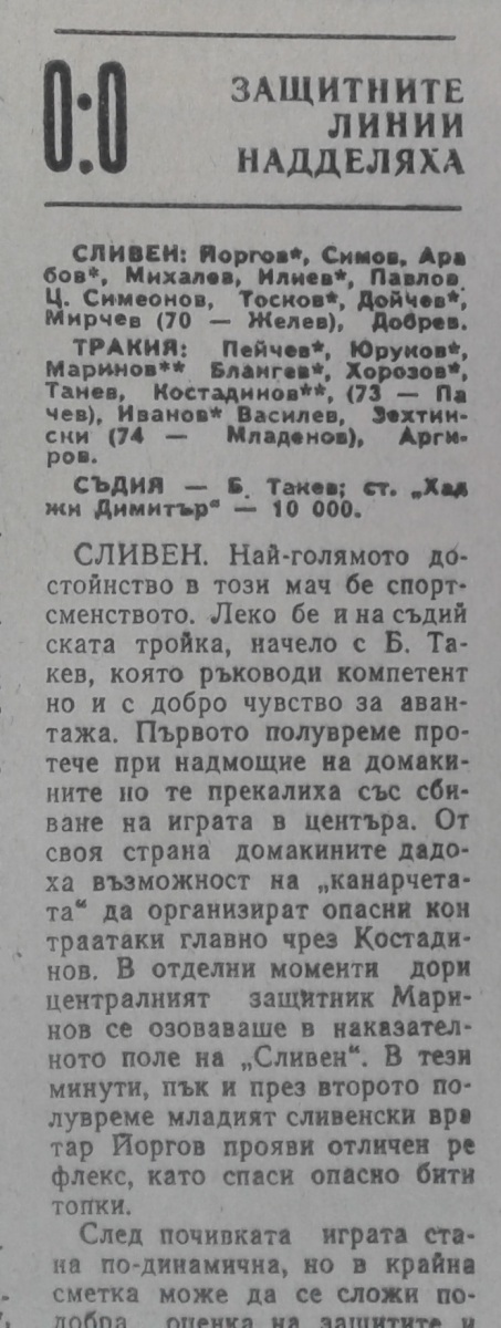 АФД Сливен - «Тракия» Пловдив - 0:0