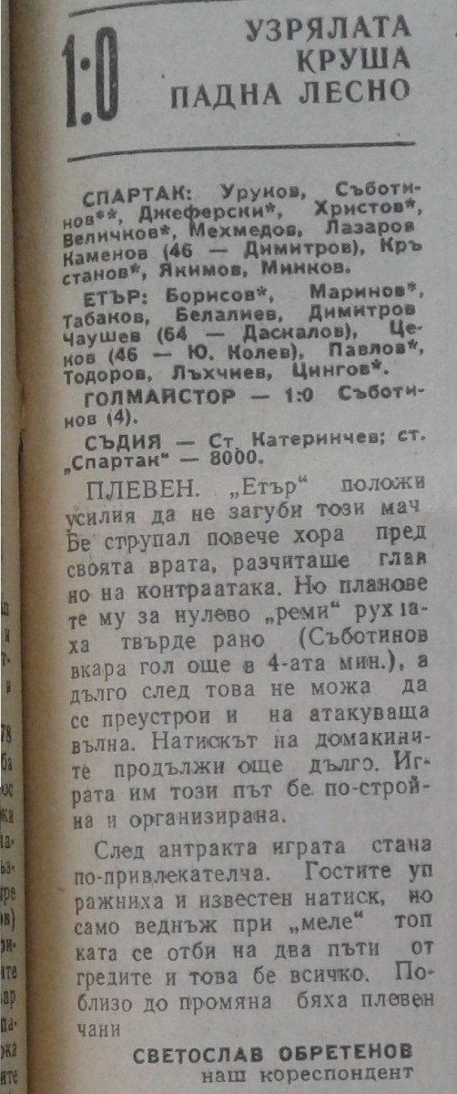 «Спартак» Плевен - «Этыр» Велико-Тырново - 1:0