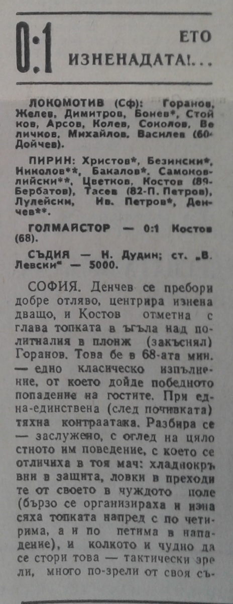 «Локомотив» София - «Пирин» Благоевград - 0:1