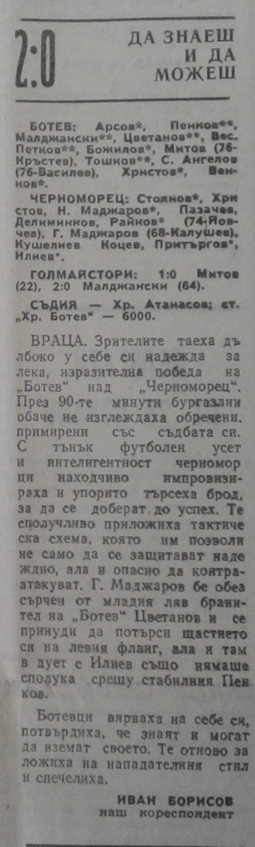 «Ботев» Враца - «Черноморец» Бургас - 2:0